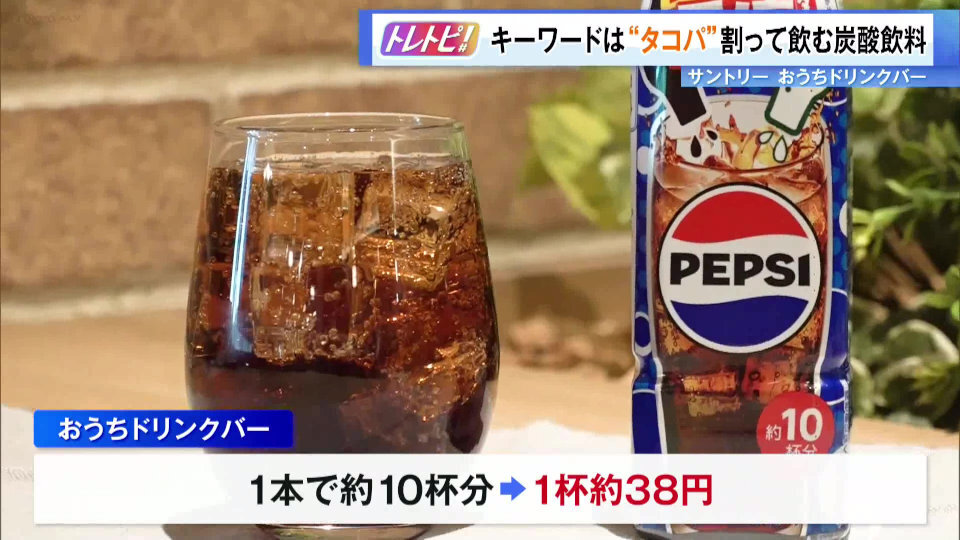 「おうちドリンクバー」に炭酸水を注ぐだけで、1本で約10杯分作ることができ、1杯あたり約38円で楽しめます。