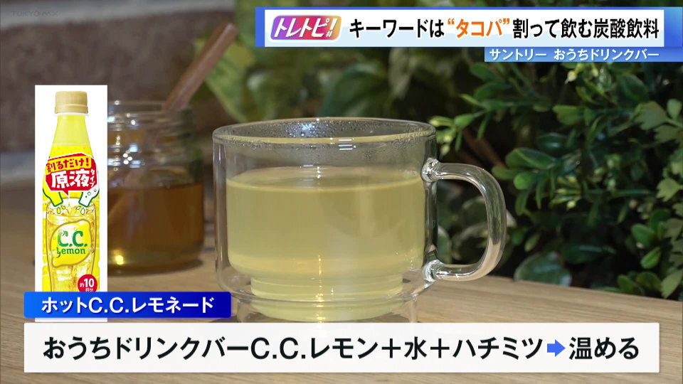 寒い季節にも楽しめるアレンジとしては、「おうちドリンクバー C.C.レモン」に水、はちみつを入れてレンジで温める「ホットC.C.レモネード」。