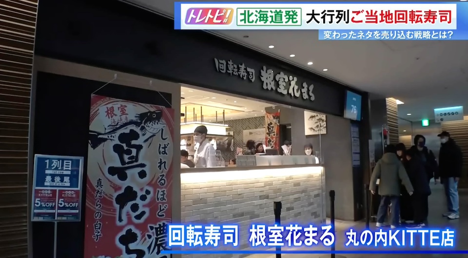 都内で3店舗展開している北海道発の回転寿司店「根室花まる」。連日大盛況で、開店前から大行列ができています。