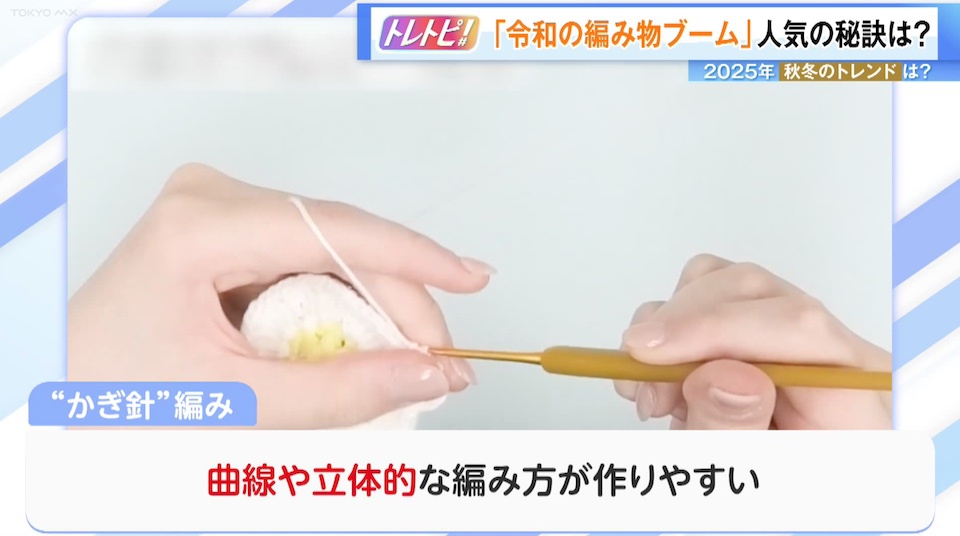 TOKYO MX(地上波9ch)朝の報道情報番組「Wake Up 7」(月~金曜 7:00~)。最新のトレンドを紹介する「トレトピ」のコーナーでは、“令和の編み物ブーム”を取材しました。