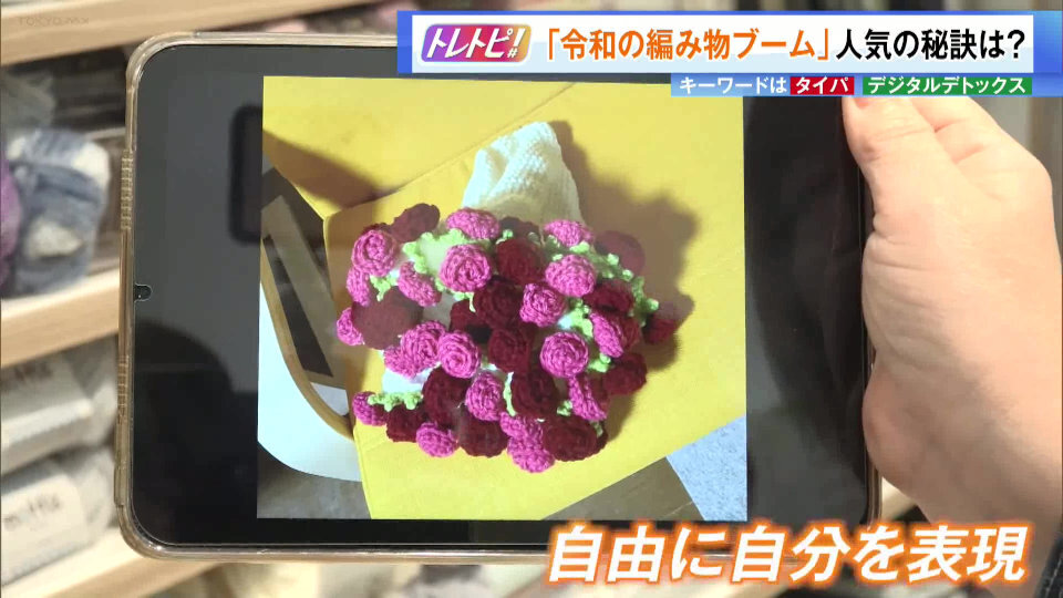 今回のブームの背景について、情報堂生活総合研究所・上席研究員の近藤さんは、編み物が“令和の欲求”にあっていると分析。「いつでもどこでも、あとは誰でも安価に始められる手軽さが、タイパ・コスパ志向に合致していますし、インターネットなど情報が溢れている中で“ノイズをシャットダウンしたい”という欲求にも編み物はしっかりと応えられる趣味になっている」と解説します。