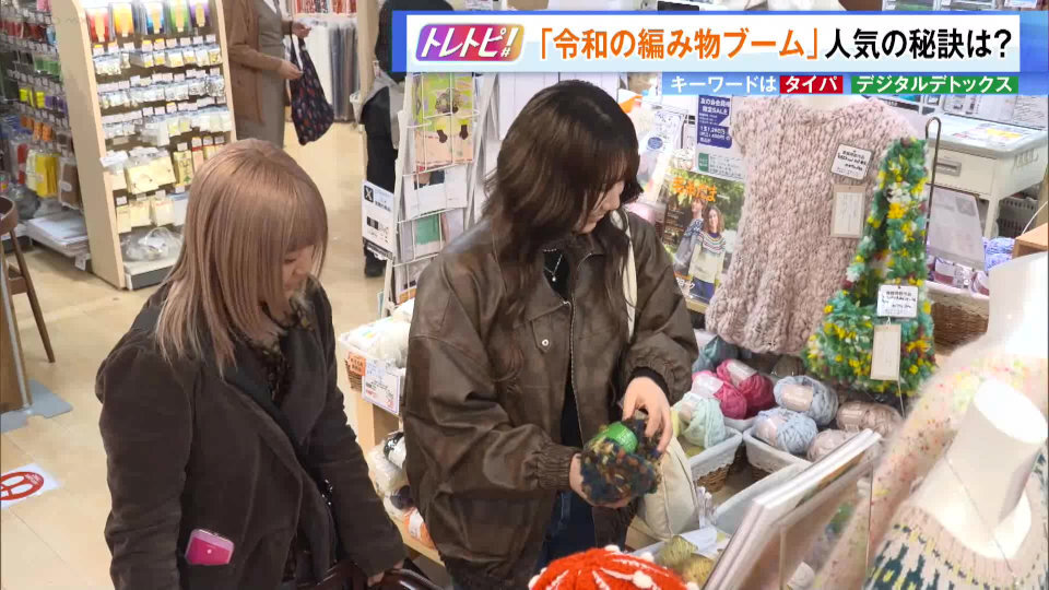 手芸用品専門店「ユザワヤ」を訪れてみると、そこには毛糸を選ぶ多くの若者の姿がありました。話を聞いてみると「去年から(編み物を始めた)。毎日学校に持っていって、移動中もずっと編んでいる」、「SNSとかにいろんな人の作品があがっていて、それを見て毛糸を探しに」といった声が。令和の今、“編み物”が再評価されています。