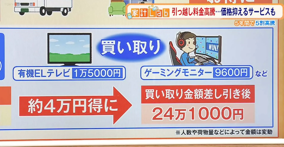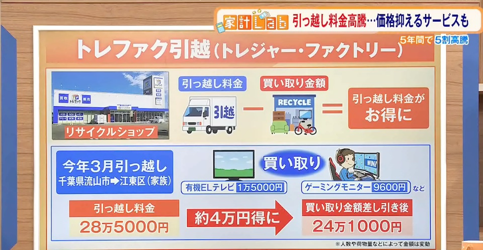 TOKYO MX(地上波9ch)の報道・情報生番組「堀潤 Live Junction」(毎週月~金曜20:00~)。家計に関するお金のニュースを深掘りする「豊崎由里絵の家計Lab」のコーナーでは、引っ越し料金高騰の裏で行われている価格を抑えるサービスに注目しました。