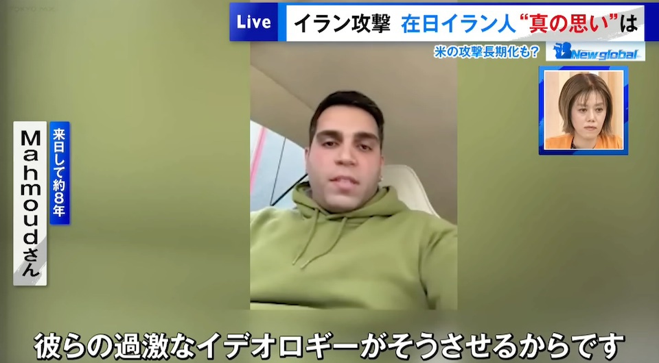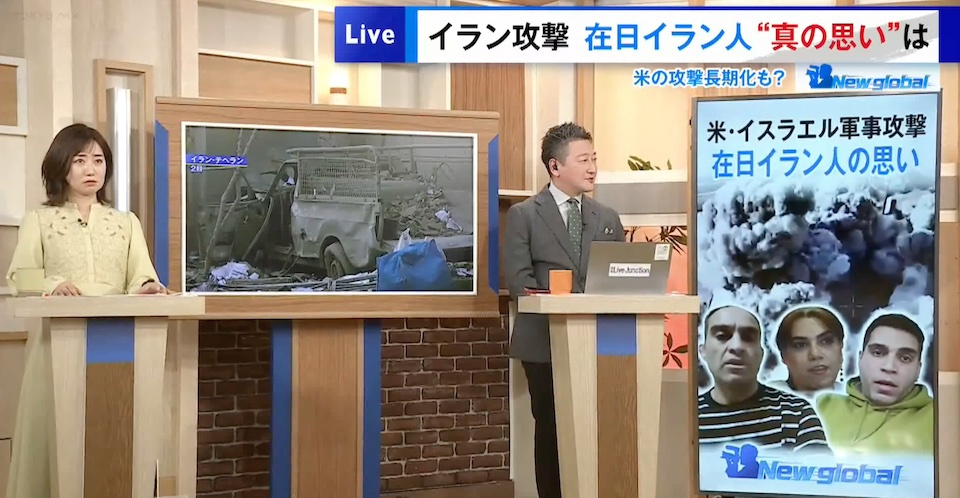 TOKYO MX(地上波9ch)の報道・情報生番組「堀潤 Live Junction」(毎週月~金曜20:00~)。3月3日(火)放送の「Newglobal」のコーナーでは、アメリカ・イスラエルの軍事攻撃に対する“在日イラン人の思い”をお届けしました。