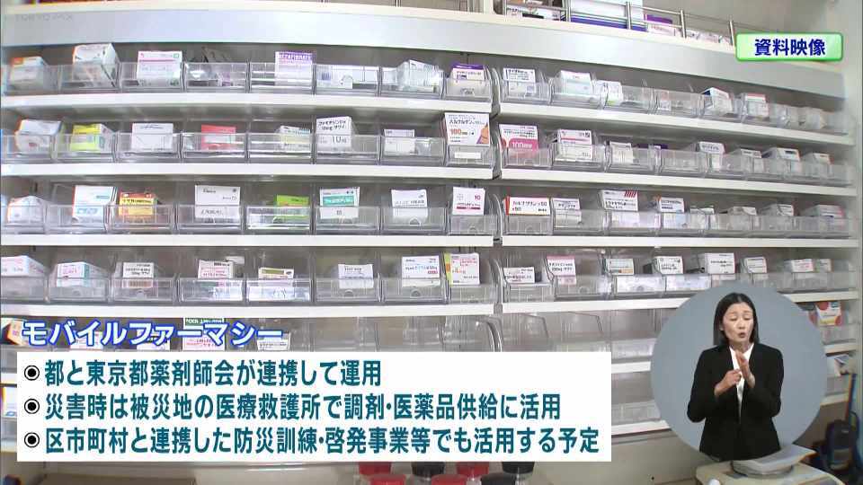 都では、東京都薬剤師会と連携してモバイルファーマシーを運用し、災害時には被災地の医療救護所での調剤や医薬品供給に活用するほか、平時は区市町村と連携した防災訓練や啓発事業などで用いる予定だということです。