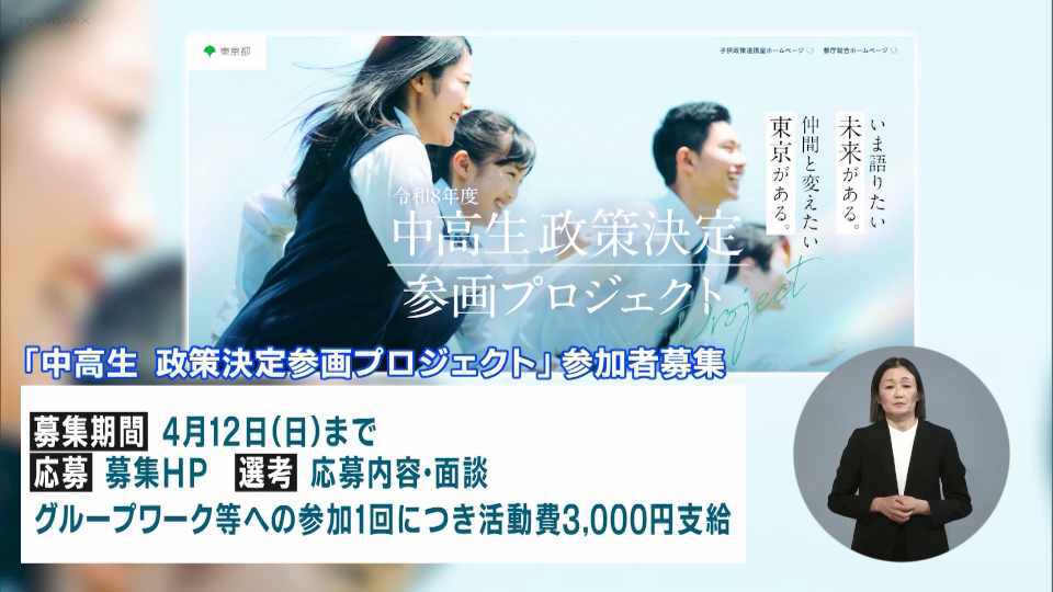 都は、「中高生 政策決定参画プロジェクト」に参加する中高生を募集しています。