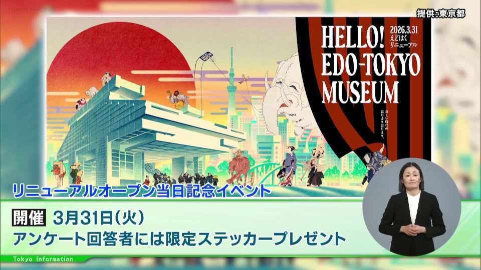 今回は、都が導入した災害用車両「モバイルファーマシー」や、3月末にリニューアルオープンを迎える江戸東京博物館の記念イベントについて紹介しました。
