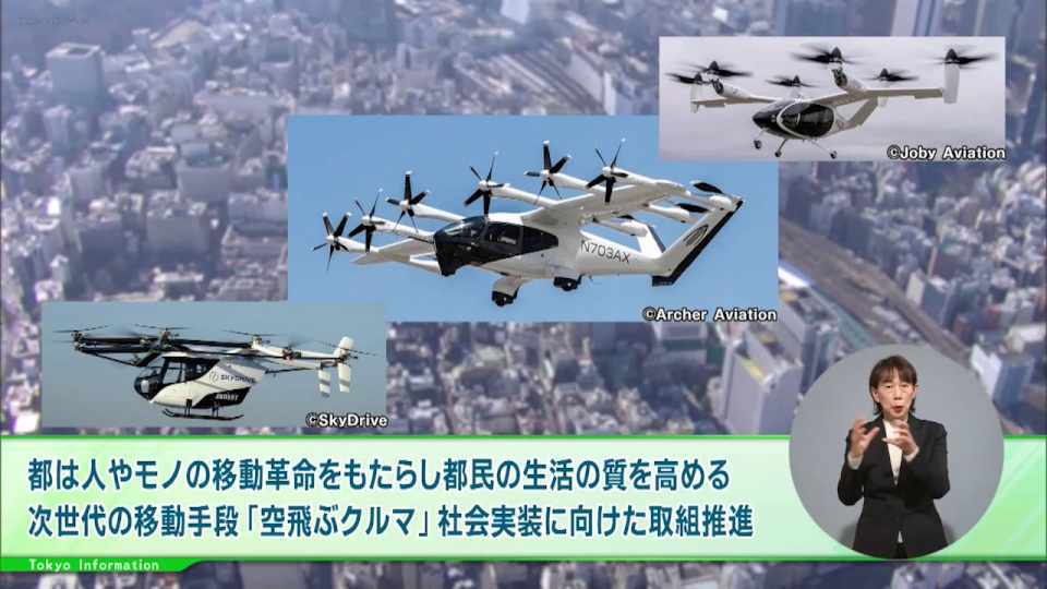 都では、人やモノの移動革命をもたらし、都民の生活の質を高める次世代の移動手段となる「空飛ぶクルマ」の社会実装に向けた取組を推進しています。