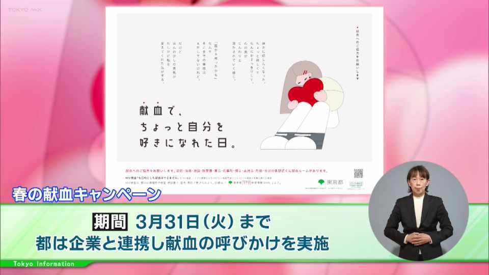 都は、3月31日(火)までの春の献血キャンペーンで、企業と連携した献血の呼びかけを実施しています。