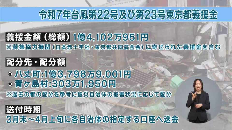 都は、去年の台風22号・23号により被害を受けた被災者への支援を実施するため、義援金を受け付け、2026年1月31日に募集を終了しました。