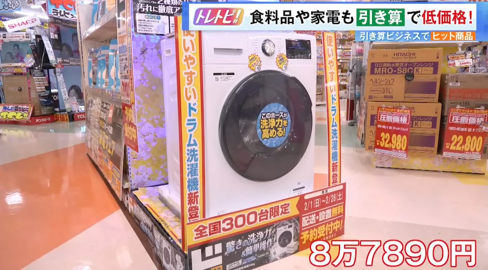 引き算することでお得になった商品は他にもあります。それは2月下旬に発売されたドラム式洗濯乾燥機です。一般的に10kgの洗濯まで可能なドラム式洗濯乾燥機の価格帯は15万円から、高いものだと30万円以上になりますが、こちらの洗濯機はなんと8万7890円と10万円を切る価格です