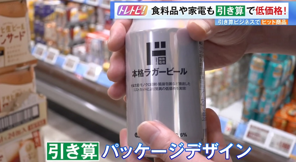 また、ドン・キホーテではラガービールがパッケージデザインを最低限のモノクロ印刷にすることでコストカットに成功。価格は1缶(330ml)で164円とかなりお得で、発売開始から3ヶ月で100万本を突破したヒット商品となりました。