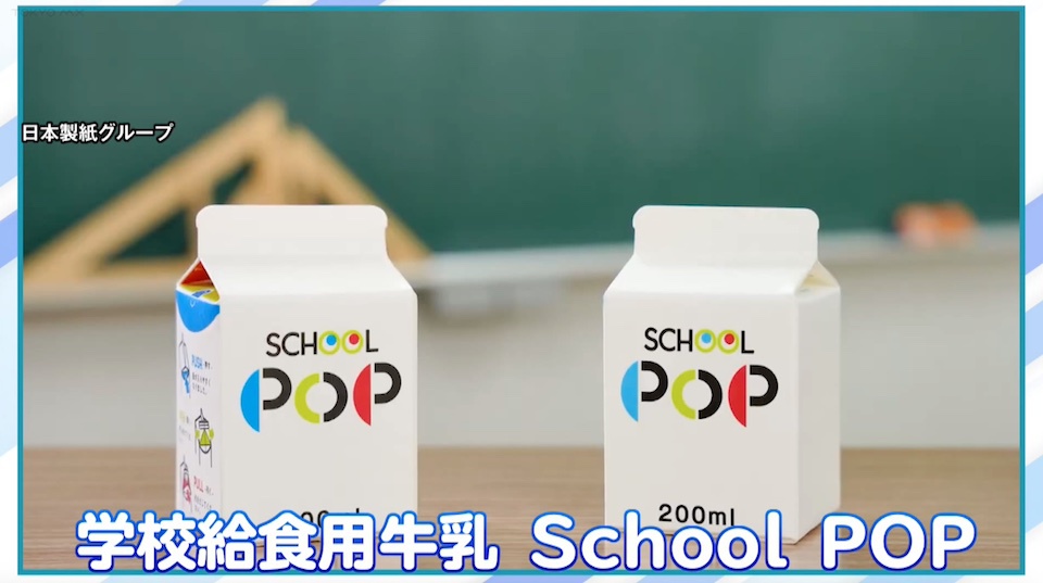 そのひとつが「学校給食用牛乳パック」。こちらは既存の学校給食用牛乳パックについている“ストロー”がついていません。ストローをなくし、直接飲めるように工夫してコストをカットしています。