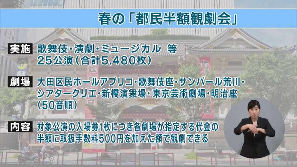 今回の「都民半額観劇会」は、歌舞伎、演劇、ミュージカルなど、25の公演で実施されます。
