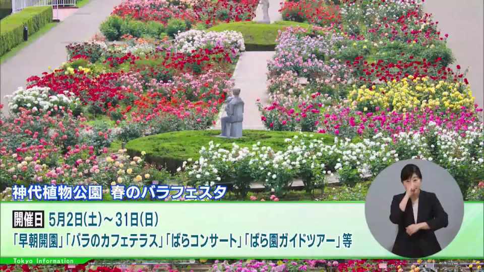 今回は、多彩な春バラが一面に咲き揃う神代植物公園で開催されるバラフェスタや、最新デジタル技術が集結する「スマートシティフェスタ」について紹介しました。